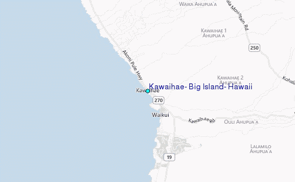 Use this relief map to navigate to tide stations, surf breaks and cities that are in the area of Kawaihae, Big Island, Hawaii.
