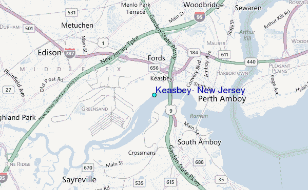 Tide stations located close to Keasbey, New Jersey Shoreline around Keasbey, New Jersey Roads and rivers around Keasbey, New Jersey
