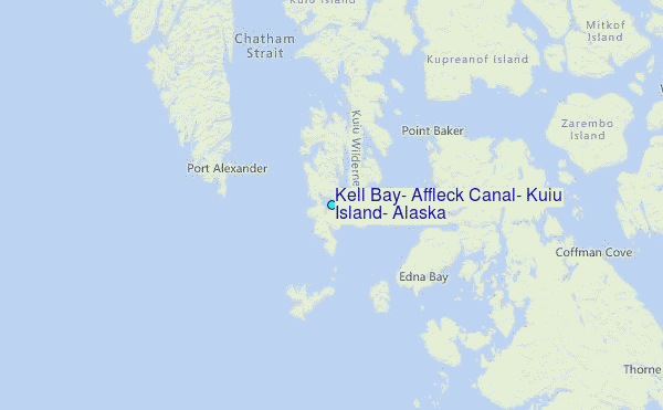 Use this relief map to navigate to tide stations, surf breaks and cities that are in the area of Kell Bay, Affleck Canal, Kuiu Island, Alaska.