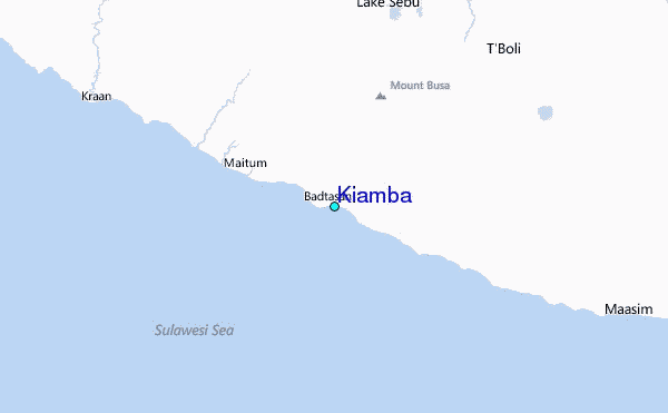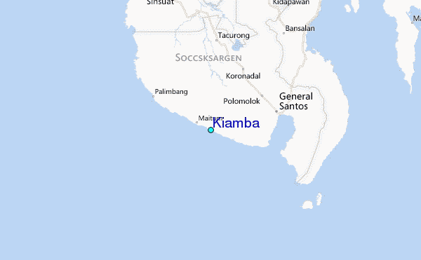 Use this relief map to navigate to tide stations, surf breaks and cities that are in the area of Kiamba.