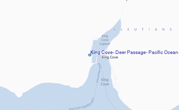 Use this relief map to navigate to tide stations, surf breaks and cities that are in the area of King Cove, Deer Passage, Pacific Ocean, Alaska.