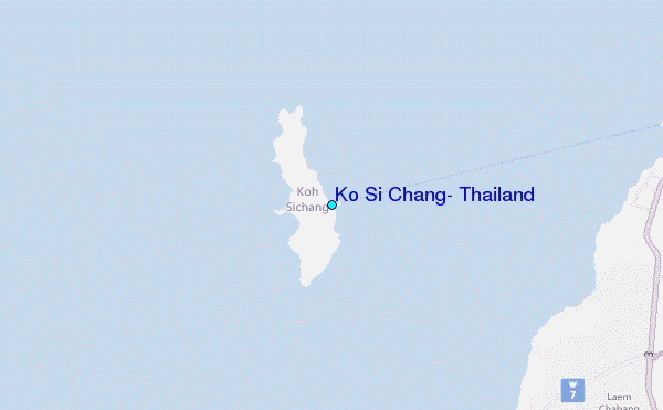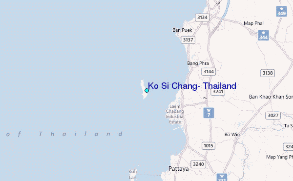 Use this relief map to navigate to tide stations, surf breaks and cities that are in the area of Ko Si Chang, Thailand.