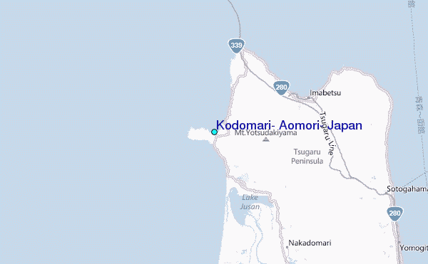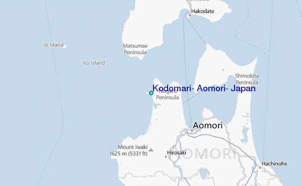 Use this relief map to navigate to tide stations, surf breaks and cities that are in the area of Kodomari, Aomori, Japan.