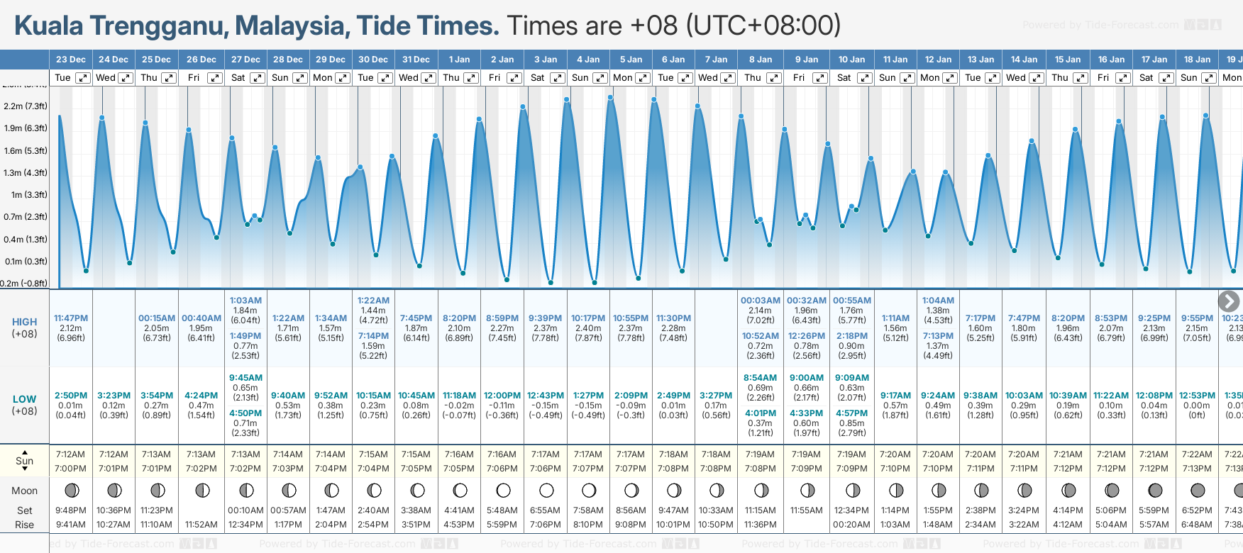 Kuala Terengganu tide times for December and January