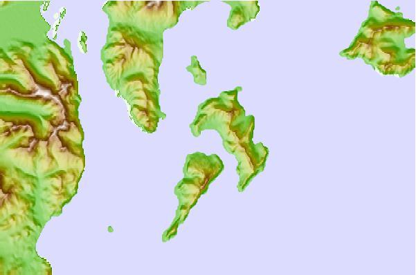 Use this relief map to navigate to tide stations, surf breaks and cities that are in the area of Kupreanof Harbor, Paul Island, Alaska.