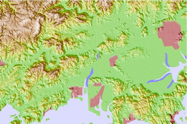 Use this relief map to navigate to tide stations, surf breaks and cities that are in the area of Kurashiki.