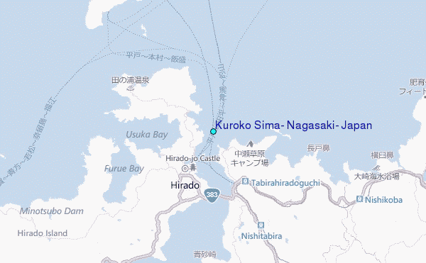 Use this relief map to navigate to tide stations, surf breaks and cities that are in the area of Kuroko Sima, Nagasaki, Japan.