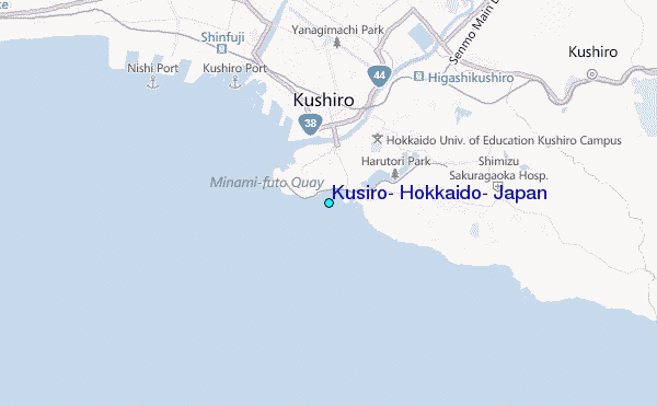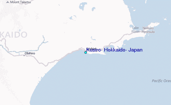 Use this relief map to navigate to tide stations, surf breaks and cities that are in the area of Kusiro, Hokkaido, Japan.
