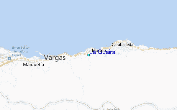 Use this relief map to navigate to tide stations, surf breaks and cities that are in the area of La Guaira.