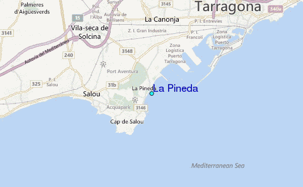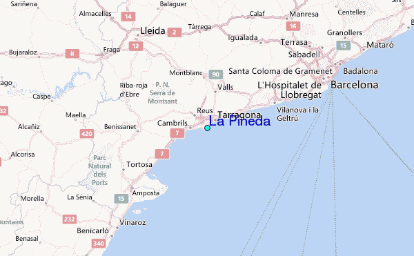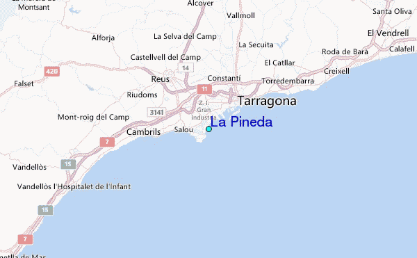 Use this relief map to navigate to tide stations, surf breaks and cities that are in the area of La Pineda.