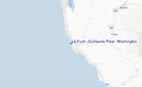 Use this relief map to navigate to tide stations, surf breaks and cities that are in the area of La Push, Quillayute River, Washington.