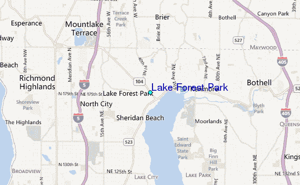 Use this relief map to navigate to tide stations, surf breaks and cities that are in the area of Lake Forest Park.
