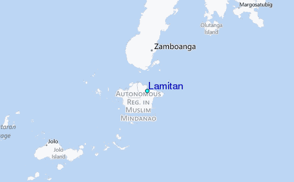 Use this relief map to navigate to tide stations, surf breaks and cities that are in the area of Lamitan.