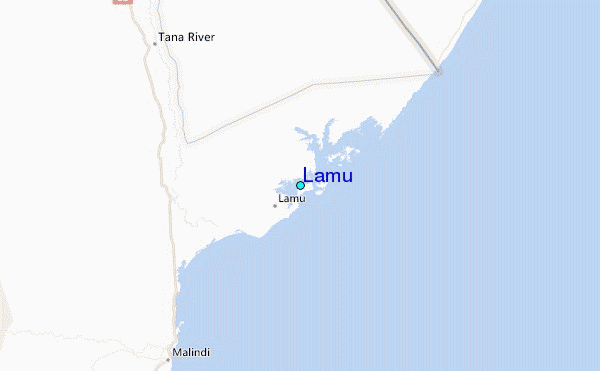 Use this relief map to navigate to tide stations, surf breaks and cities that are in the area of Lamu.
