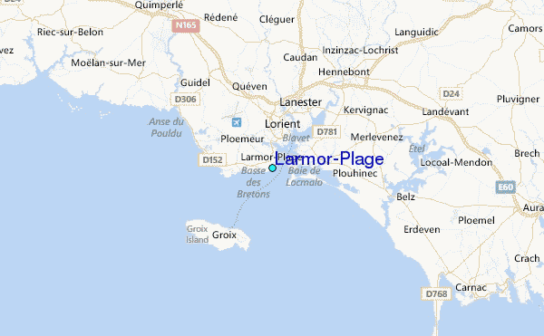 Use this relief map to navigate to tide stations, surf breaks and cities that are in the area of Larmor-Plage.