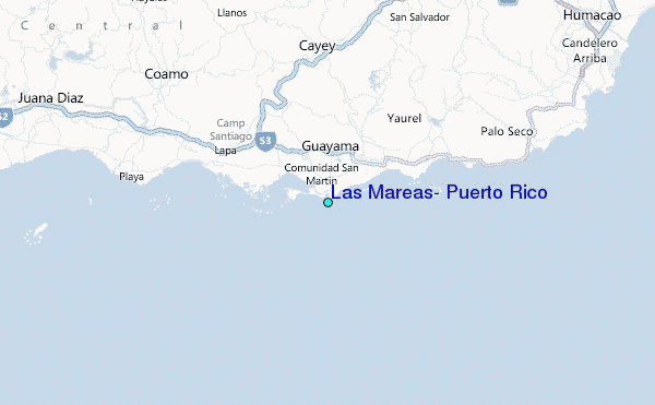 Use this relief map to navigate to tide stations, surf breaks and cities that are in the area of Las Mareas, Puerto Rico.