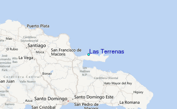 Use this relief map to navigate to tide stations, surf breaks and cities that are in the area of Las Terrenas.
