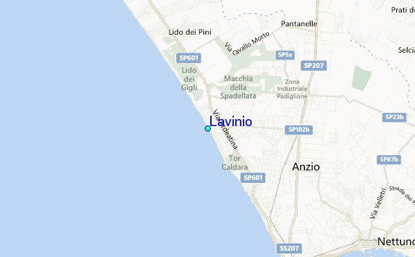 Use this relief map to navigate to tide stations, surf breaks and cities that are in the area of Lavinio.