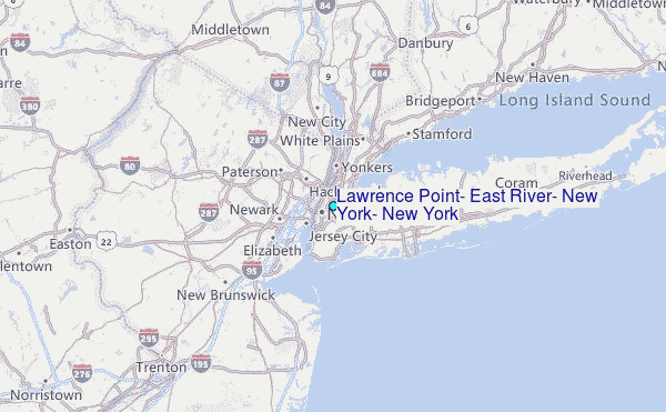 Use this relief map to navigate to tide stations, surf breaks and cities that are in the area of Lawrence Point, East River, New York, New York.