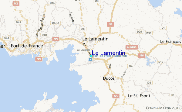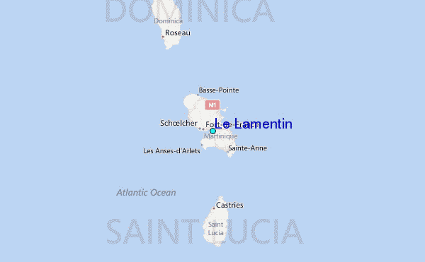 Use this relief map to navigate to tide stations, surf breaks and cities that are in the area of Le Lamentin.