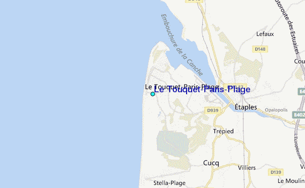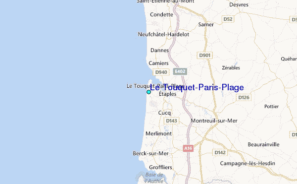 Use this relief map to navigate to tide stations, surf breaks and cities that are in the area of Le Touquet-Paris-Plage.