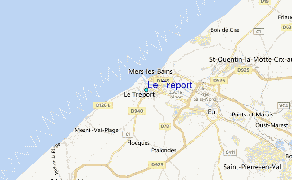 Use this relief map to navigate to tide stations, surf breaks and cities that are in the area of Le Treport.