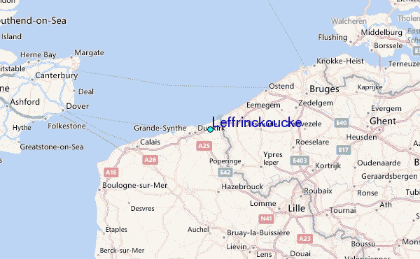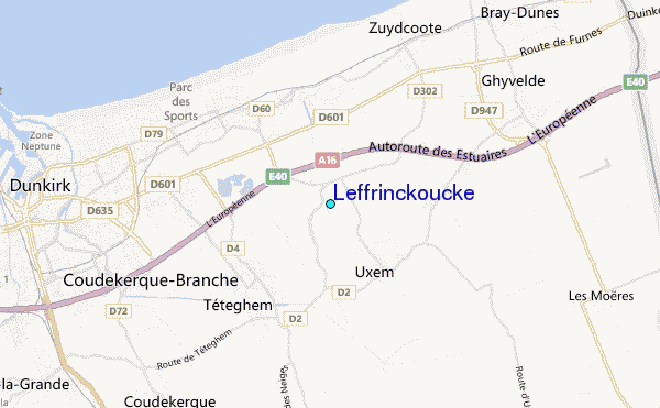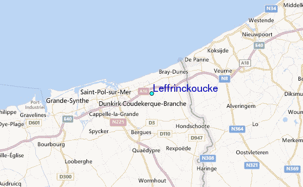 Use this relief map to navigate to tide stations, surf breaks and cities that are in the area of Leffrinckoucke.
