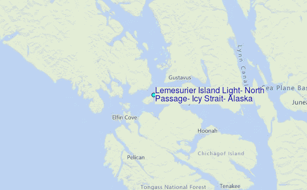 Use this relief map to navigate to tide stations, surf breaks and cities that are in the area of Lemesurier Island Light, North Passage, Icy Strait, Alaska.