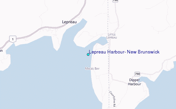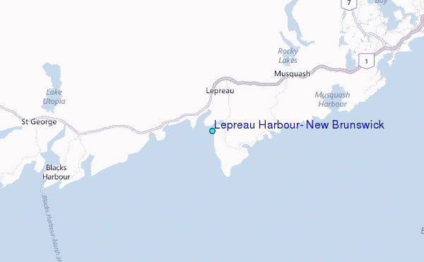 Use this relief map to navigate to tide stations, surf breaks and cities that are in the area of Lepreau Harbour, New Brunswick.