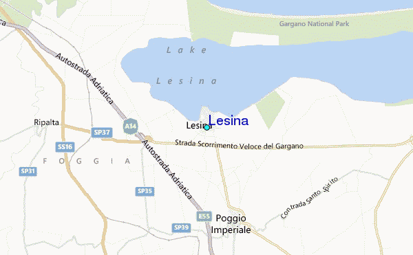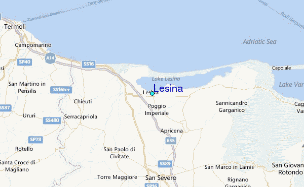 Use this relief map to navigate to tide stations, surf breaks and cities that are in the area of Lesina.
