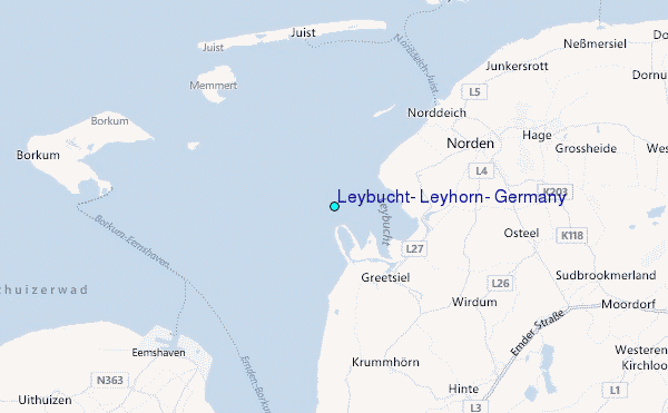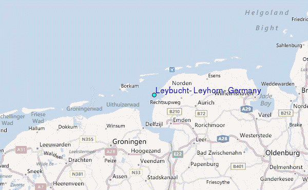 Use this relief map to navigate to tide stations, surf breaks and cities that are in the area of Leybucht, Leyhörn, Germany.