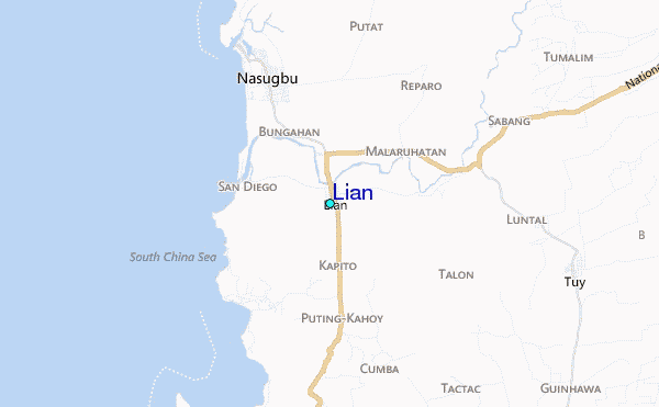 Use this relief map to navigate to tide stations, surf breaks and cities that are in the area of Lian.