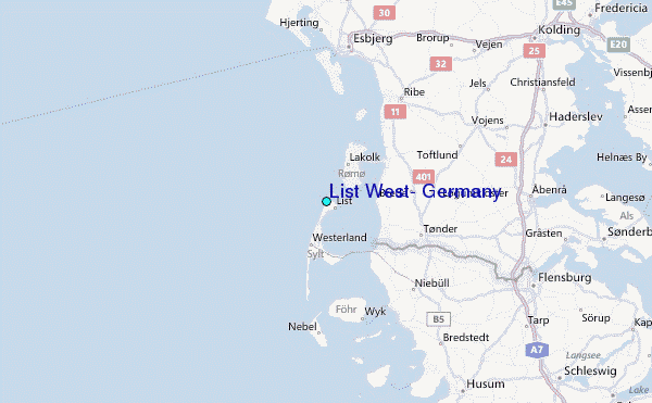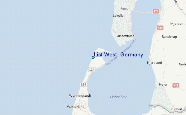 Use this relief map to navigate to tide stations, surf breaks and cities that are in the area of List West, Germany.
