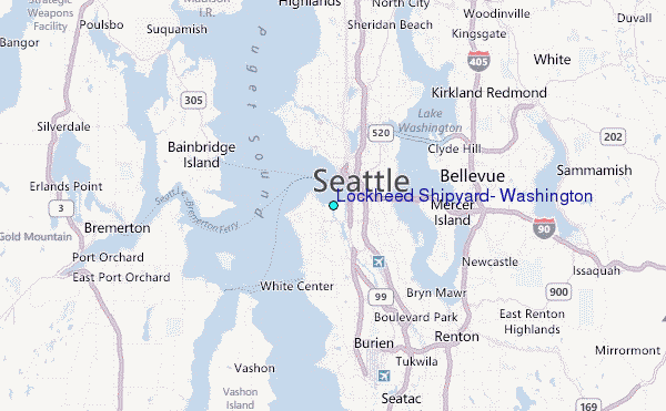 Use this relief map to navigate to tide stations, surf breaks and cities that are in the area of Lockheed Shipyard, Washington.