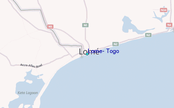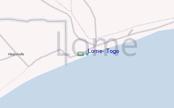 Use this relief map to navigate to tide stations, surf breaks and cities that are in the area of Lome, Togo.
