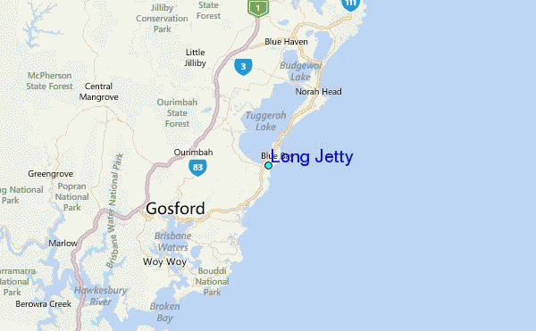 Use this relief map to navigate to tide stations, surf breaks and cities that are in the area of Long Jetty.