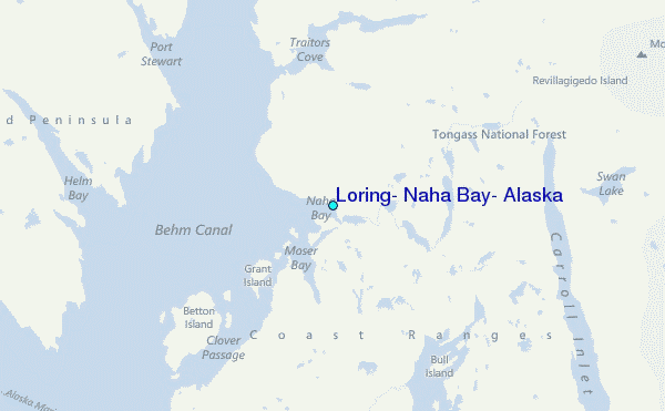 Use this relief map to navigate to tide stations, surf breaks and cities that are in the area of Loring, Naha Bay, Alaska.