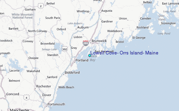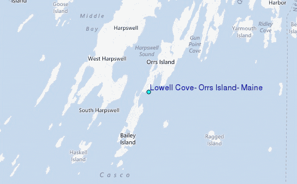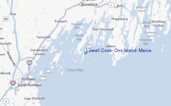 Use this relief map to navigate to tide stations, surf breaks and cities that are in the area of Lowell Cove, Orrs Island, Maine.