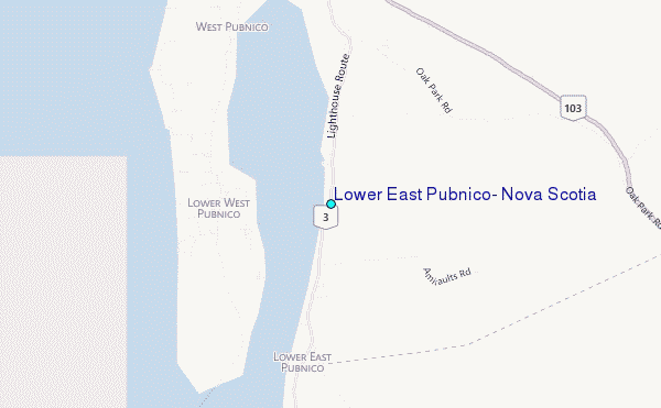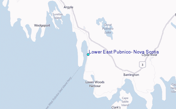 Use this relief map to navigate to tide stations, surf breaks and cities that are in the area of Lower East Pubnico, Nova Scotia.