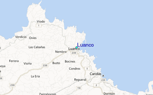 Use this relief map to navigate to tide stations, surf breaks and cities that are in the area of Luanco.