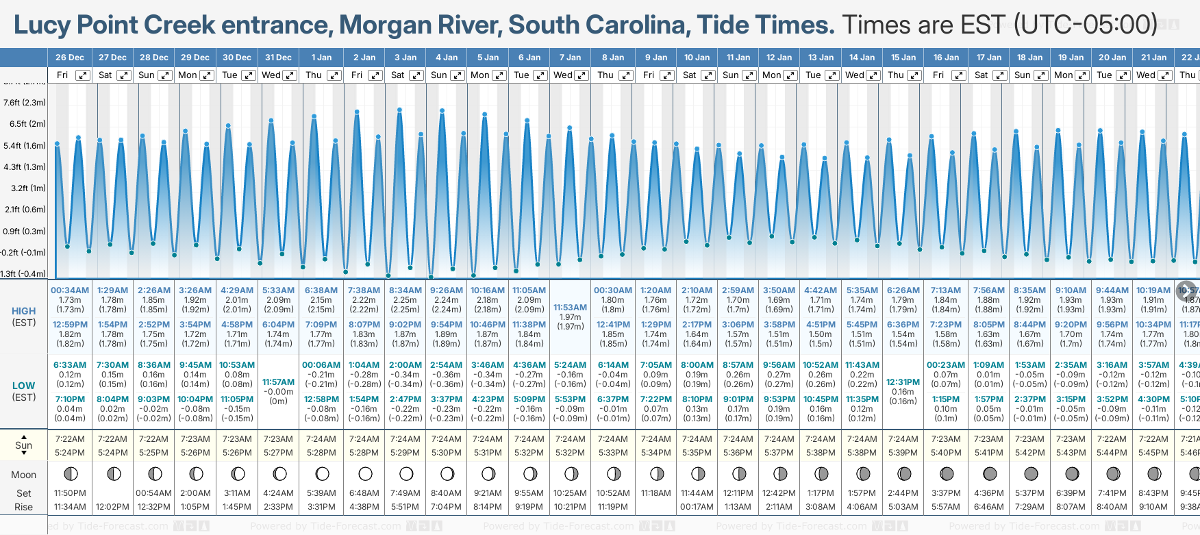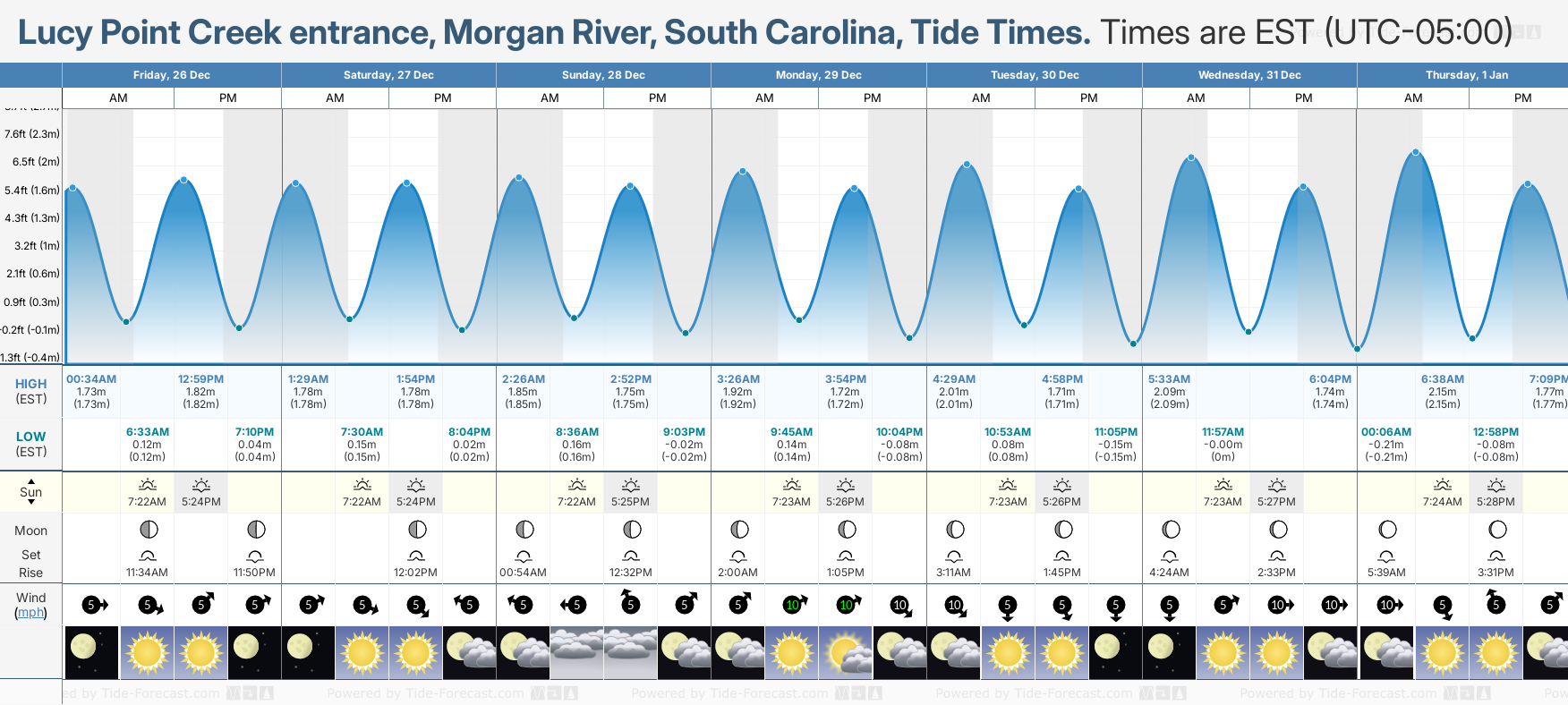 NOTE: Use of this site for Lucy Point Creek entrance, Morgan River, South Carolina tide times is subject to our terms.