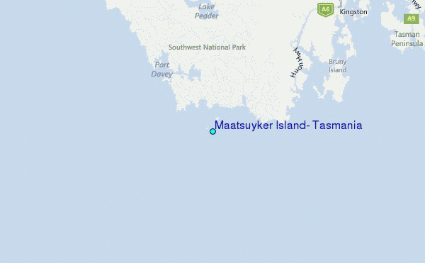 Use this relief map to navigate to tide stations, surf breaks and cities that are in the area of Maatsuyker Island, Tasmania.