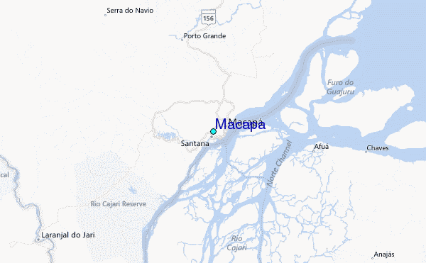 Use this relief map to navigate to tide stations, surf breaks and cities that are in the area of Macapá.