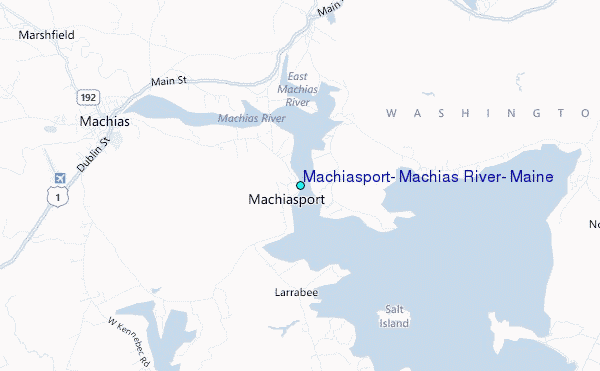 Use this relief map to navigate to tide stations, surf breaks and cities that are in the area of Machiasport, Machias River, Maine.