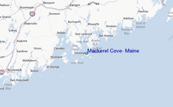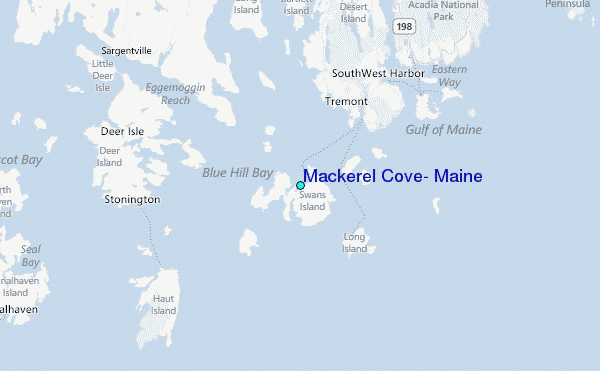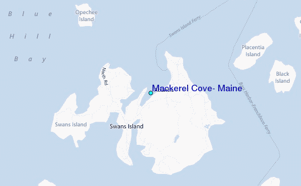 Use this relief map to navigate to tide stations, surf breaks and cities that are in the area of Mackerel Cove, Maine.
