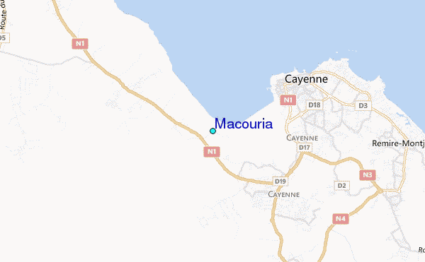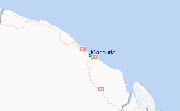 Use this relief map to navigate to tide stations, surf breaks and cities that are in the area of Macouria.