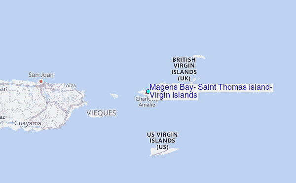Use this relief map to navigate to tide stations, surf breaks and cities that are in the area of Magens Bay, Saint Thomas Island, Virgin Islands.