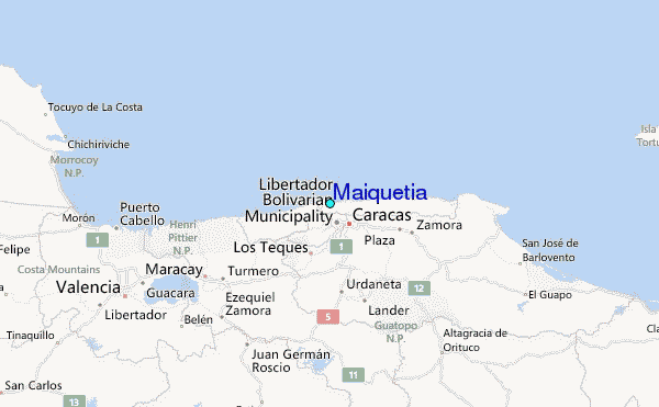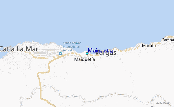 Use this relief map to navigate to tide stations, surf breaks and cities that are in the area of Maiquetia.