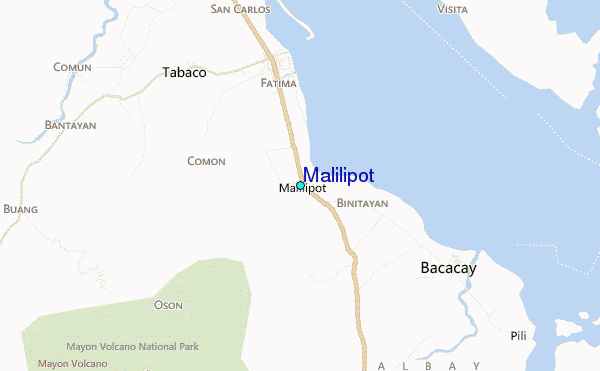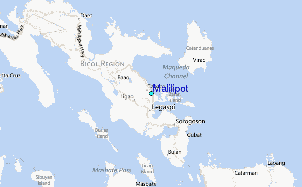 Use this relief map to navigate to tide stations, surf breaks and cities that are in the area of Malilipot.