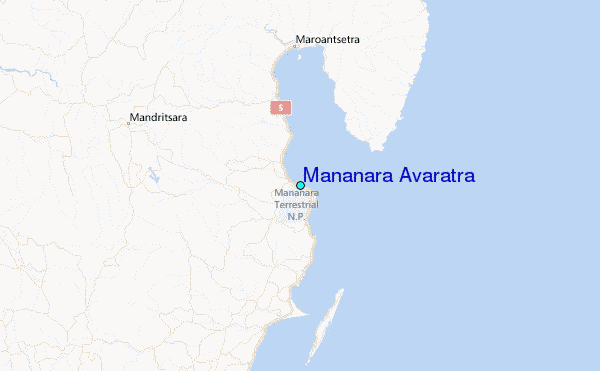 Use this relief map to navigate to tide stations, surf breaks and cities that are in the area of Mananara Avaratra.